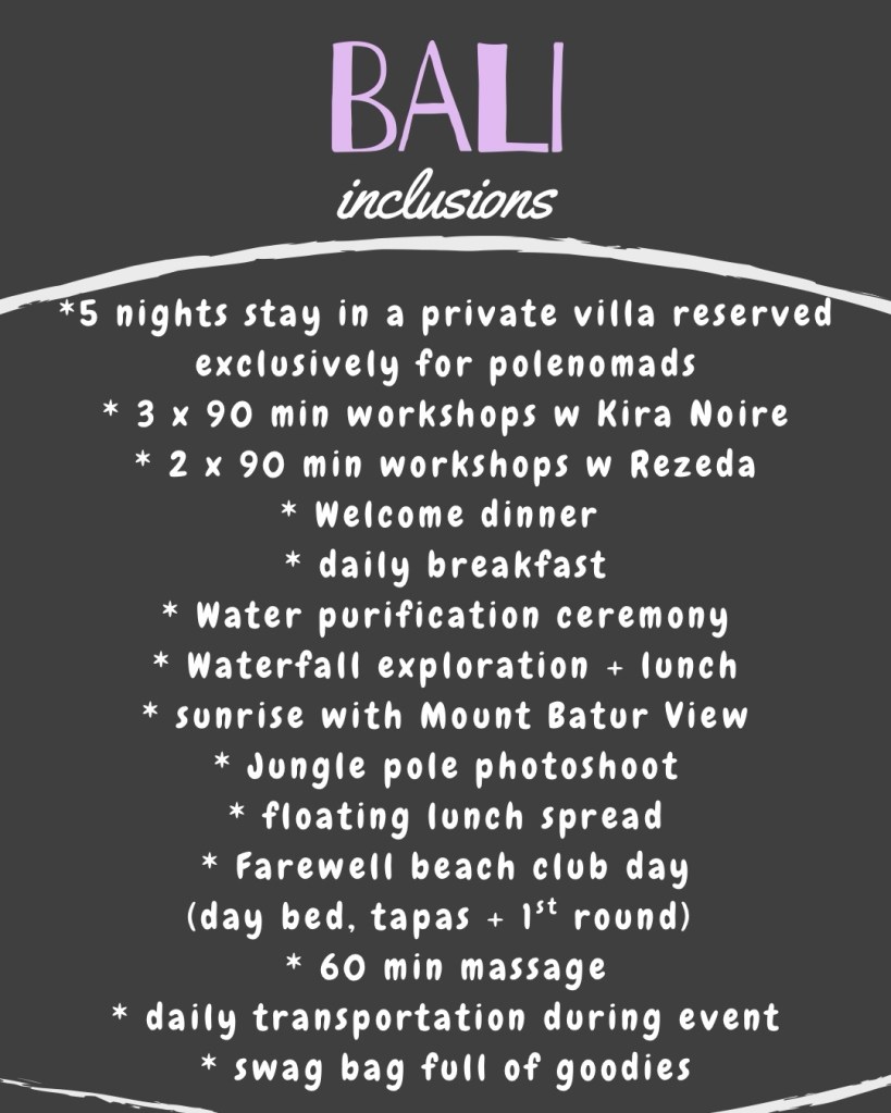 All workshops will be held at the world famous Robean Pole Studio, a hidden gem nestled in the jungle. Imagine training in a tropical paradise, surrounded by lush greenery.