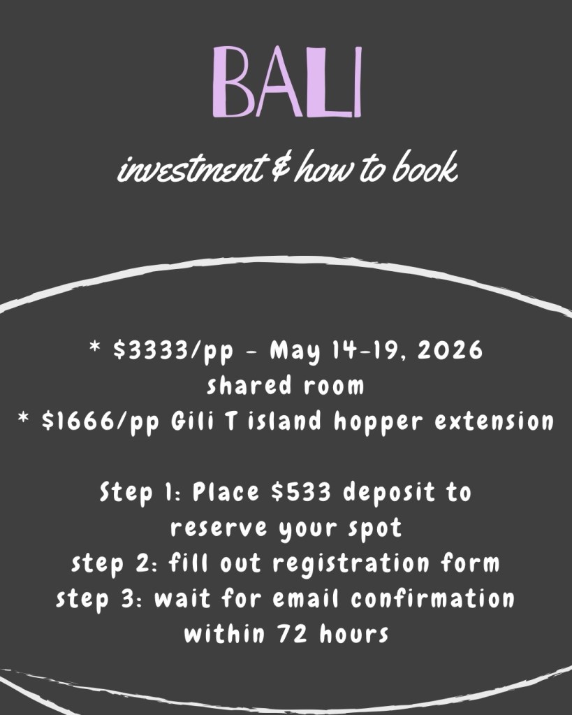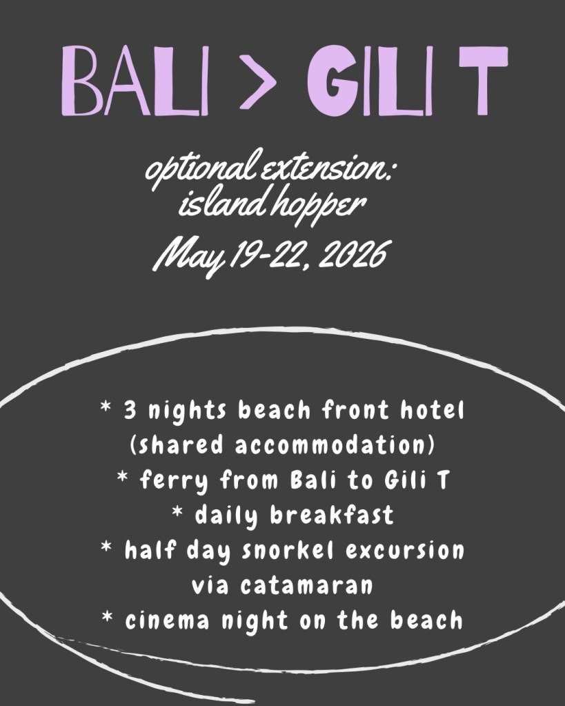 We’ll be staying in a private luxury villa reserved exclusively for our group. Expect beautiful open-air shared spaces with a private pool and a tropical oasis feel. Price is for a shared king bed or a single bed. Note, there are very limited single beds.