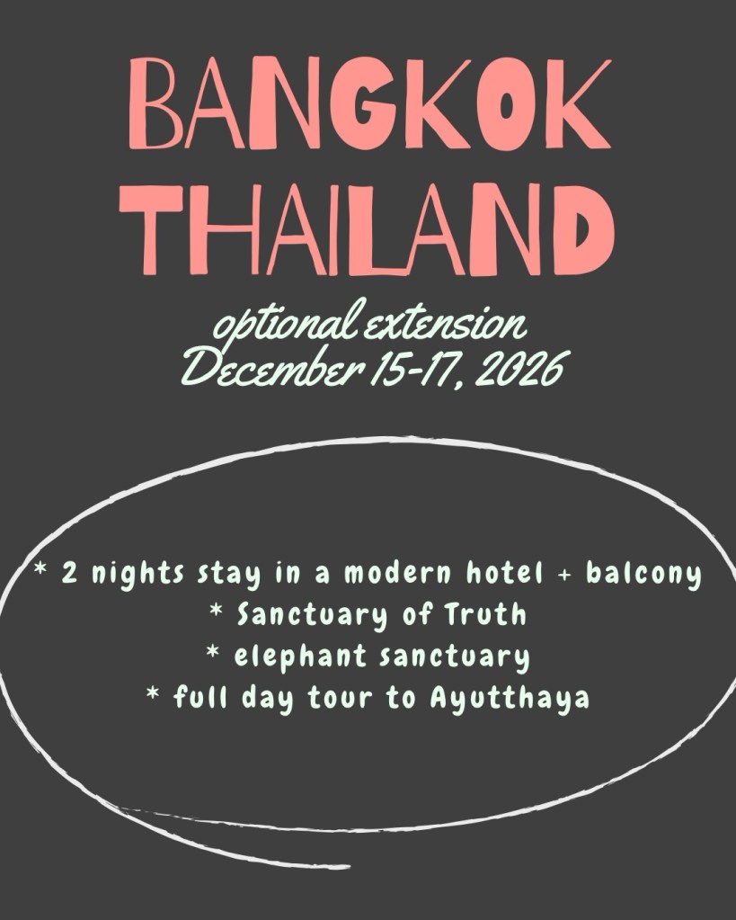 We will be staying in a modern hotel located in Bangkok’s historic Old Town known for traditional culture, street food and walkable streets. Experience modern living with a rooftop pool, fully equipped gym, and an onsite restaurant and cafe. Just beyond our hotel, step into a true authentic experience. Walk to the riverfront, many temples and the famous Khaosan Road.